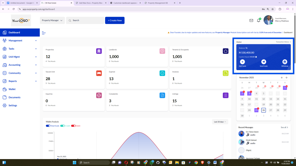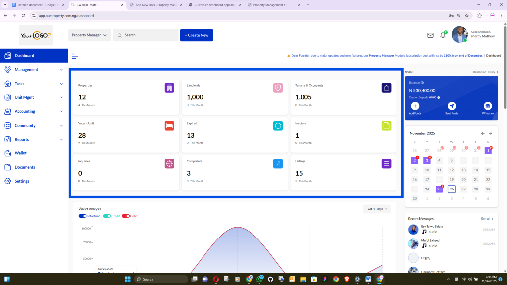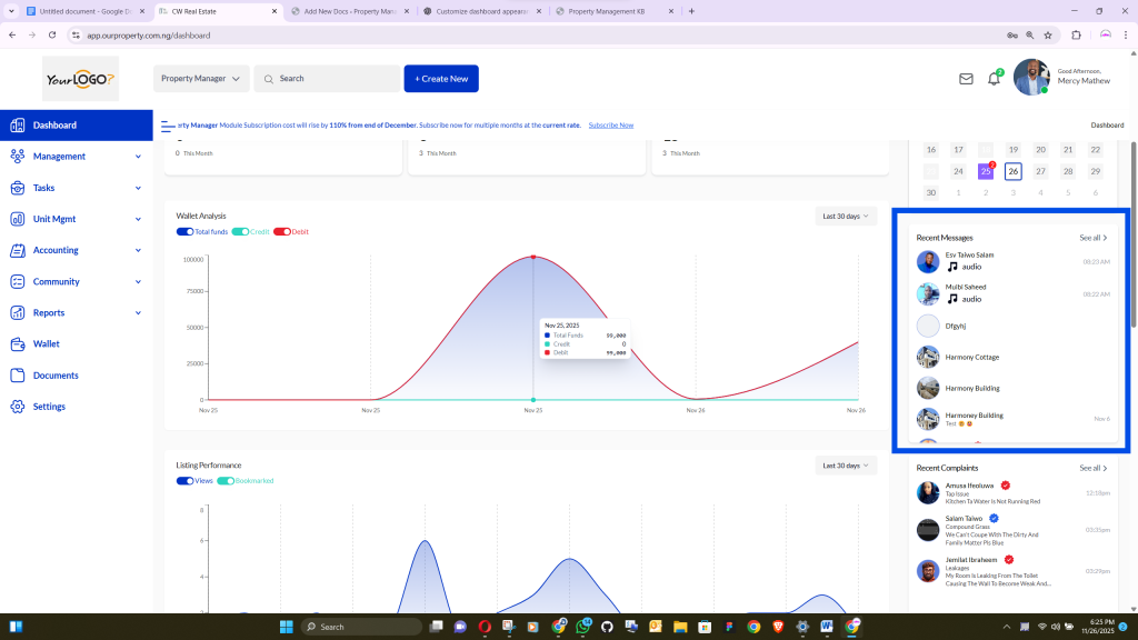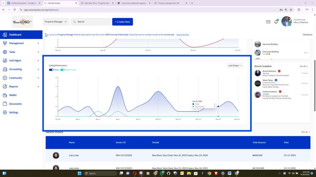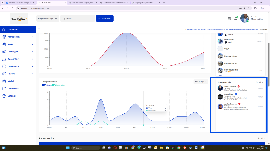 A proper setup ensures that all dashboard features—including complaints, wallet, messages, and listings—function correctly and display accurate information.