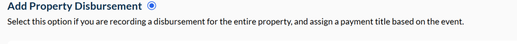 Choose the property where the disbursement payment will be recorded. This links the transaction directly to the selected property and its units, ensuring accurate and traceable financial reporting.