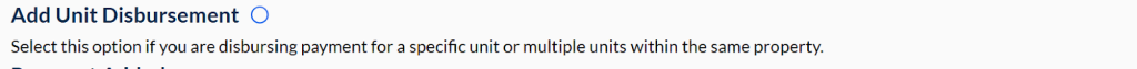 Use Add Unit Disbursement when a specific unit within a property incurs its own costs.