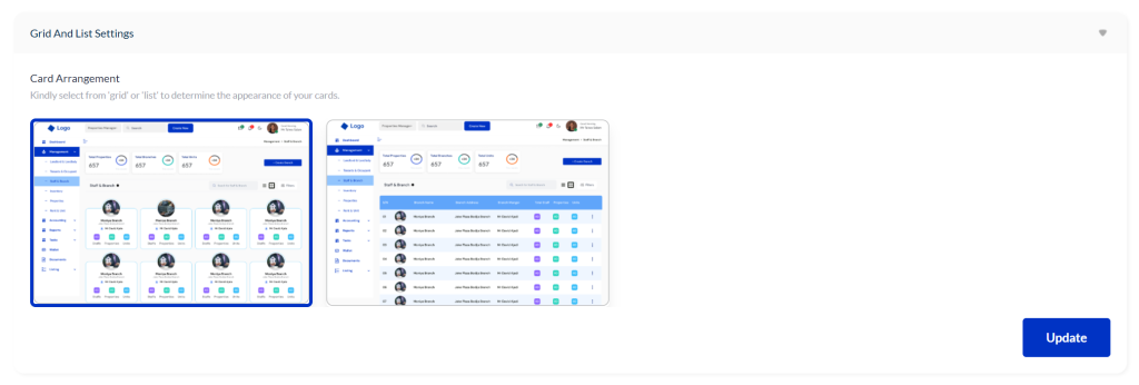Each template changes the overall structure and visual style of your dashboard, giving your company complete control over how the system appears to staff members.