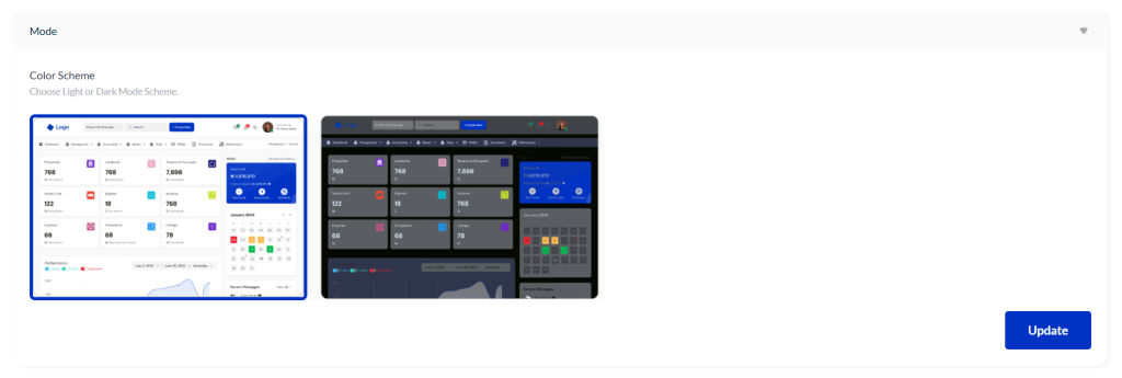 If you prefer a darker interface, you can switch the dashboard to Dark Mode.