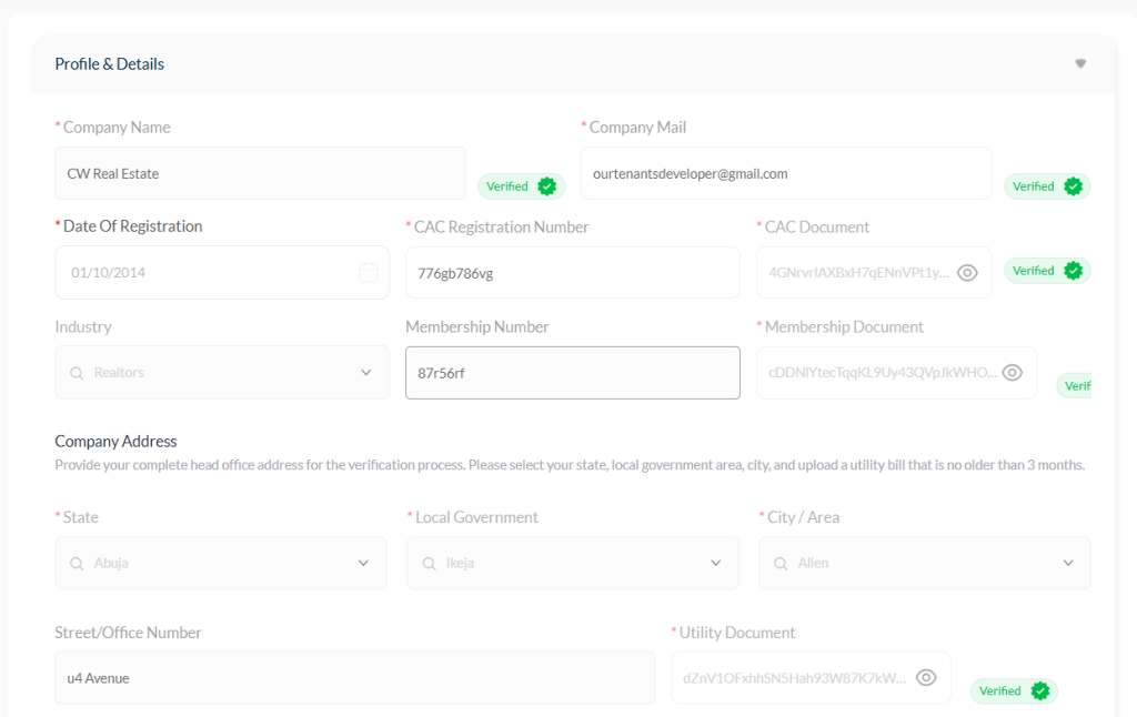 If you ever need to change your company name (for example, you have a new CAC certificate), just send an email to hello@ourproperty.ng explaining the reason for the change and attach your updated CAC document.